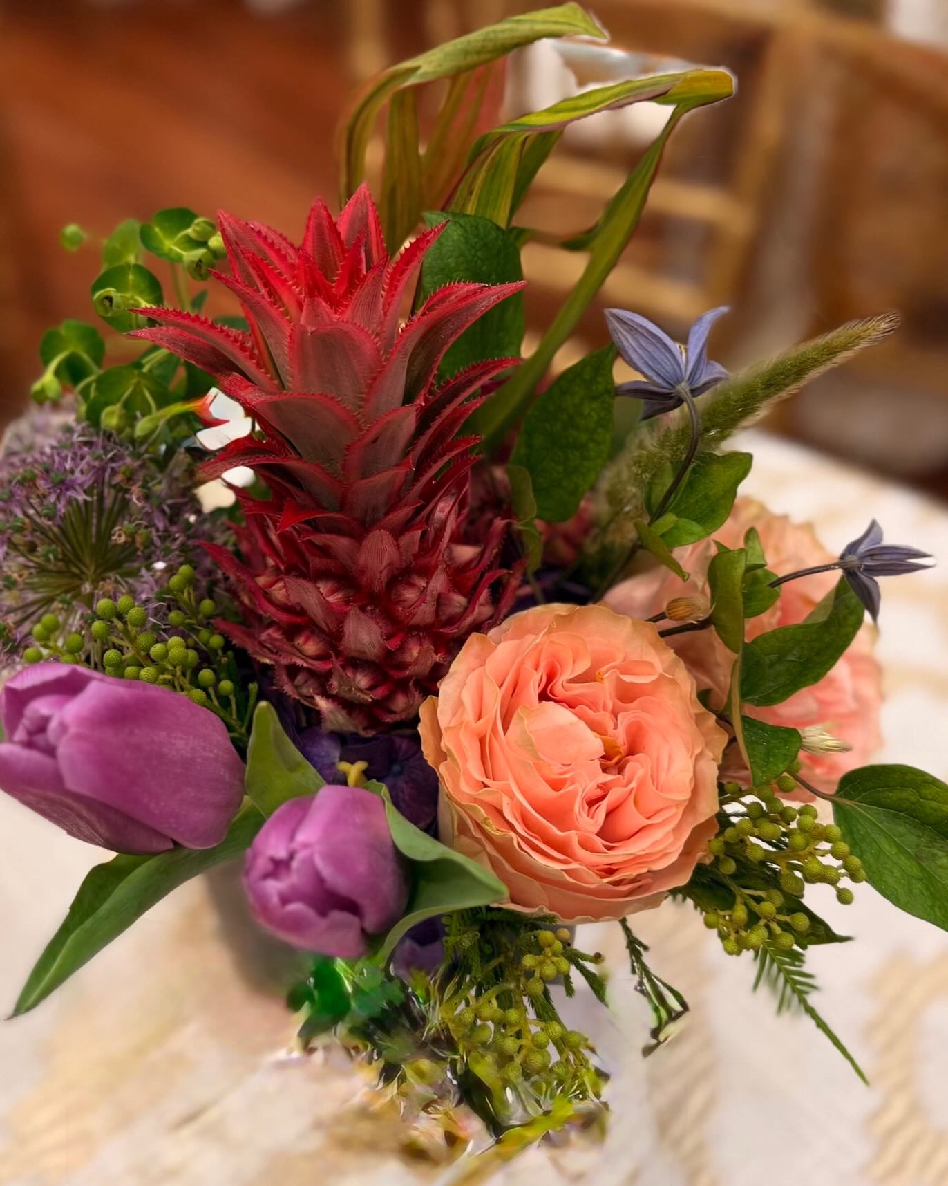 From small bouquets to entire wedding tent, Thierry's work reflects a passion for flowers and beauty. He delights in personal touches like dressing garden statues with floral necklaces or creating a unique arrangement for each table.
